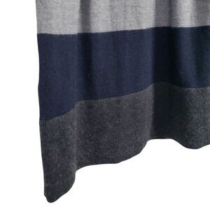Keywords: Sweaterdress, Office, CareerCasual, Loft dress, striped dress, navy and gray dress, casual dress, medium dress, merino wool blend, button tab sleeves, elastic waist, acrylic blend dress, navy striped dress, medium striped dress