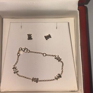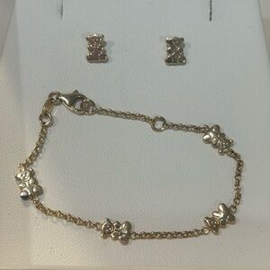 Child Size 14KT Gold Teddy Bear Stud Earrings and Teddy Bear Bracelet