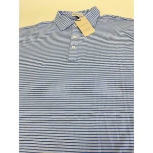 NWT Peter Millar Triple Stripe Pima Cotton Golf Polo Shirt Blue MEDIUM $115