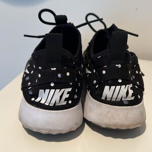 Polka Dot NIKE Sneakers that have been personally bedazzled. There are a few gemstones missing as shown with glue marks.