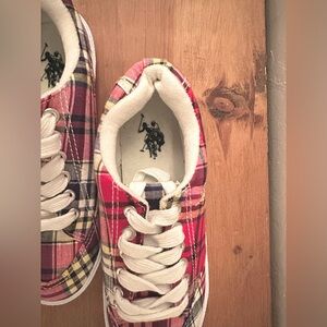 Red plaid women’s tennis shoes by U.S. Polo Assn.