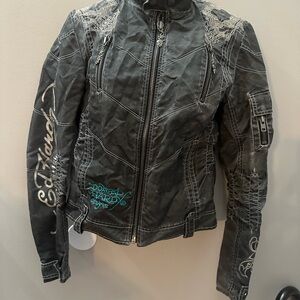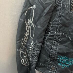 Ed Hardy Dark Grey Moto Jacket with Tiger Embroidery Y2K Biker Grunge Alt