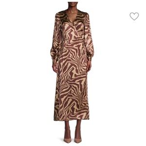 From website: Yet another easy Ref number you probably need. This is a midi wrap dress with a high slit, v neckline and a cap sleeve.