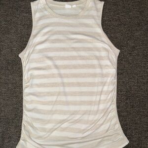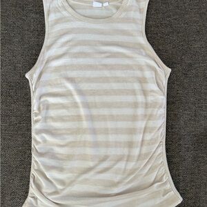GAP Beige and White Stripes Ruched Sleeveless Muscle Tee, Small