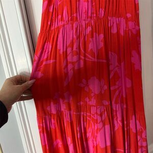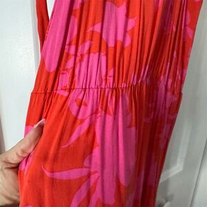 Elevate your summer wardrobe with this stunning multicolor maxi dress, perfect for a breezy vacation evening or a casual day out. The halter neckline and sleeveless design offer a chic and airy feel, while the vibrant floral pattern adds a touch of whimsy. Crafted from woven polyester, this dress flows gracefully with every step, accentuated by a matching belt that cinches the waist for a flattering silhouette. Whether you're strolling along the beach or attending a garden party, this dress is your go-to choice. Pre-owned in great condition.