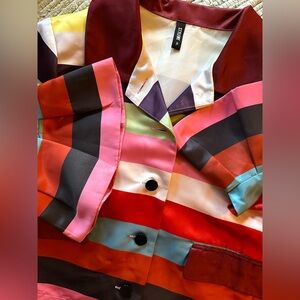 Striped Multicolor Women's satin Jacket Stylewe w real pockets size XL boxy fit