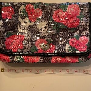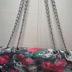 Betsey Johnson Sequin Skull Rose Chain Stap bag/purse