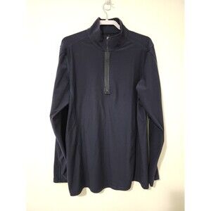 Eddie Bauer Tall Mens 1/4-Zip Mock Neck Pullover Navy Blue Cotton-Blend Size LT