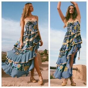 NEW Mac Duggal Tiered Ruffle Sequin Gown Maxi Dress Powder Blue 9116