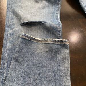 These LOFT jeans feature a relaxed fit and a classic blue hue, enhanced by a vintage wash that adds a touch of timeless style. The light distressing around the knees and thighs gives them a casual, lived-in look, perfect for everyday wear. Crafted from quality denim, they offer a comfortable and stylish option for any casual occasion.