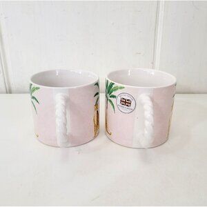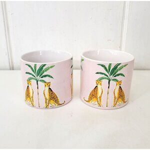 Set Of 2 Bluebird & Willow British Design Ceramic Mugs With Leopard & Palm Tree