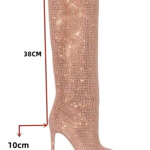 Silver Rhinestone Stiletto Women's Knee-High Boots