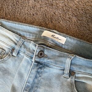 Kancan flare jeans; size 15/31; light wash; raw hems; side se detail; worn once