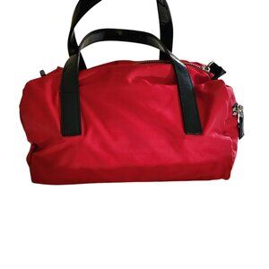 This vintage PRADA nylon satchel bag is a stylish and practical choice for any woman. With a rectangular shape and double handles, this top handle bag is perfect for travel and casual occasions. The bag features a zip closure and a side zip pocket. Lightly used, excellent condition.
