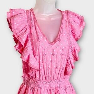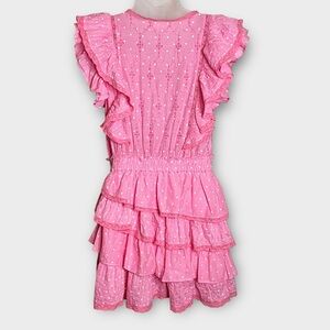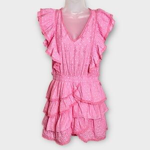 LOVESHACKFANCY Corelli Ruffle Tier Hot Pink Cherry Cottage Dress Size Medium