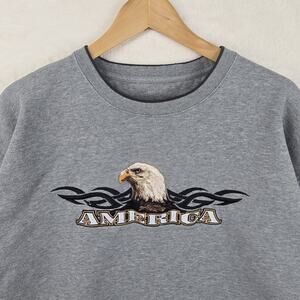 Croft & Barrow America Gray Crewneck Sweatshirt Large Tribal Bald Eagle USA