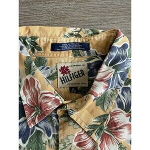 Tommy Hilfiger Hawaiian Shirt Mens Size XL Yellow Floral Short Sleeve Vintage