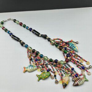 Cat’s Eye Bead Necklace Lot Pink Green Chip Bead Pendant Boho Layering 18 Inch