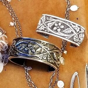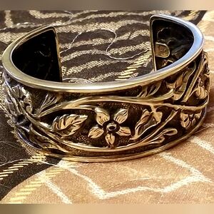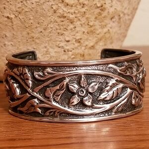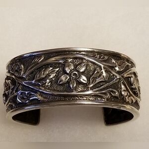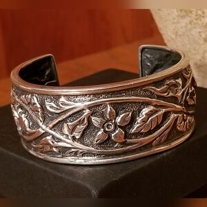 B1475 Handcrafted oxidized Sterling Silver flowering vine Cuff Bracelet. Beautiful craftsmanship... beautiful Bracelet.