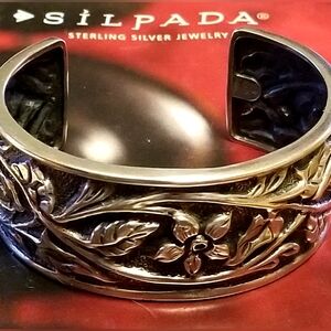 Rare Silpada Sterling Silver Flower Vine Cuff Bracelet