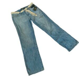 Lauren Ralph Lauren Womens Boyfriend Fit Blue Denim Jeans Woven Belt Size 6
