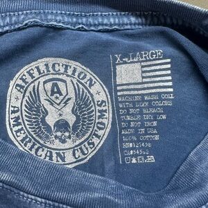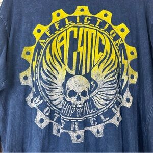 Affliction Mens Motor Club Graphic Tshirt XL Y2k Long Sleeve Blue Skull America
