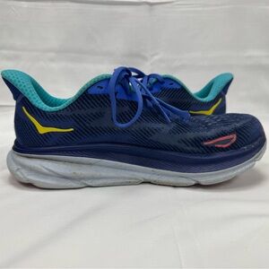 Excellent condition HOKA Clifton 9 athletic shoe. Blue with pink accents. See photos for wear. Original laces and insoles, non smoking home