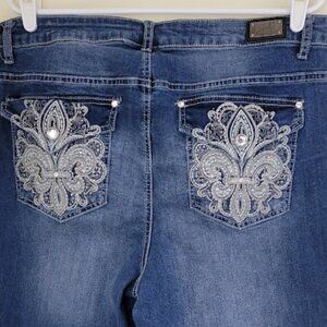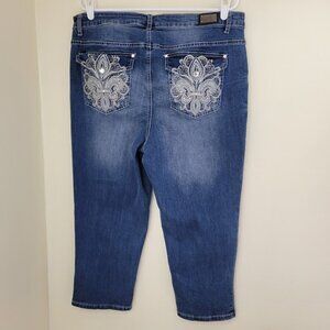 Earl Jean Rhinestone Embroidery Embellished Capri Denim Blue Women's Size 18W