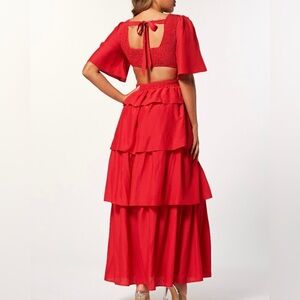 Vibrant red maxi dress, perfect for summer days and warm nights.