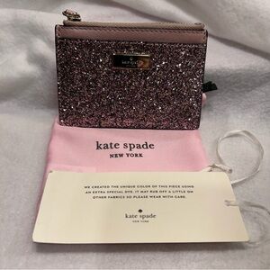 Kate Spade pink/rose gold Sunset Lane Adi coin zip mini wallet. NWT.