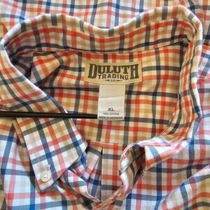 DULUTH TRADING Red White Blue Madras Plaid Short Sleeve Button Up SHIRT Men's XL