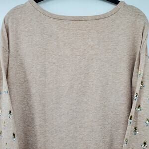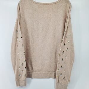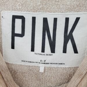 VS Pink Y2K Athletic Oversized Logo Jeweled Long Sleeve Sweatshirt Oatmeal Tan S