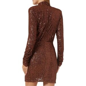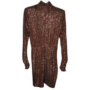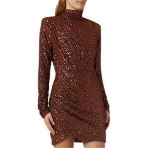 Ronny Kobo | Jane Sequined Knit Mockneck Mini Dress in Brown - Size M