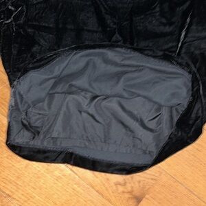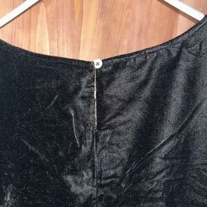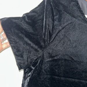 Brand new! Black, velvet material oversized blouse in a t-shirt style and keyhole with button on back of neck. Has a slate gray lining and size medium.