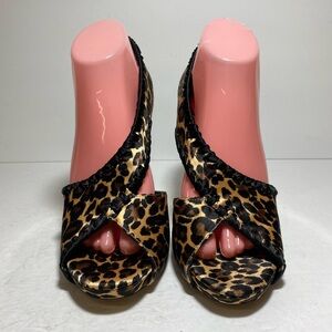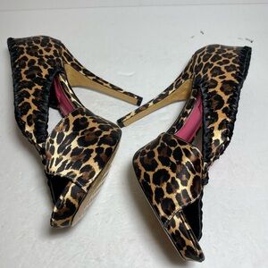 New Betsy Johnson Leopard Print Peep Toe Satin Beautiful and Sexi High Heel Pump Women's Shoes Size 10