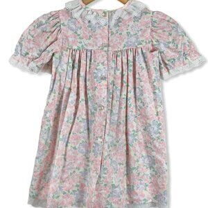 Girls Dress Size 5 Vintage Pastel Floral Eyelet Trims Puff Sleeve Button Back