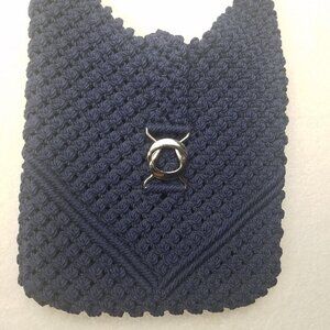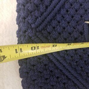 Purse Hobo shoulder Crochet Woven Navy large macramé knotted metal buckle close