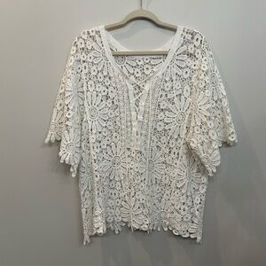 Coldwater Creek 100% Linen Button Up Blouse Quarter Length Sleeves Green Size L