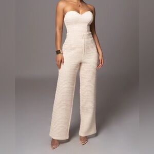 NWTG; Never worn. These JLUXLABEL Ivory Stay Sharp Trousers were made for days in the City. Elegantly tailored trousers topped with a button-fly zipper closure and stylish center seam detail with straight-leg hems. Size XS. Materials: 85% Polyester 15% Wool Length: (inseam) 33 in. (waist) 27 in.