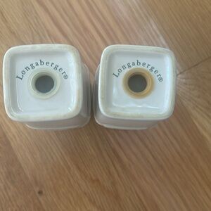 Longaberger Salt n Pepper shakers with wrought iron holder cream color