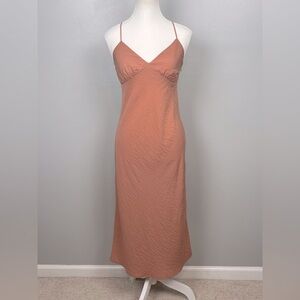 Madewell Layton midi viscose blend strappy cross back side zip slip dress, size 2. Adjustable spaghetti straps. Great condition. Approximate measurements 15.5” pit to pit, 48.5” shoulder to hem with straps adjusted as shown.