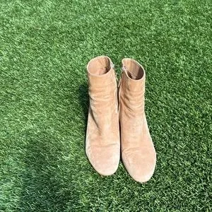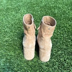 Women’s Sam Edelman 7.5 Fawn Boot in Warm Oat. There are used but still in good condition, small mark on left front boot. These are super cute to wear with jeans or a dress for a night on the town. These are comfortable and great to wear.