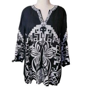 Premise Studio tunic Women's L Sleeveless top blue Layered Geometric floral boho