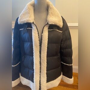 Cozy faux shearling jacket by Tahari. Perfect for chilly days.
