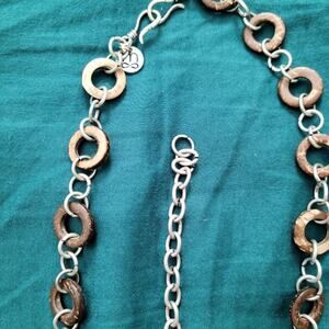 Mialisia Necklace with alternating silver chain and coconut shell mini hoops.