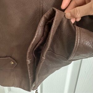 Stylish brown leather vest with multiple pockets. Perfect for layering.