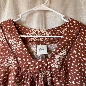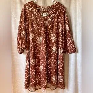 Knox Rose | Linen Blend Rusty Brown Cheetah Print Dress 3/4 Sleeves Women Large