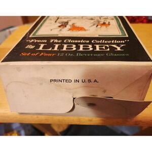 Currier & Ives glassware vintage 1965 In Original Box Classic Collection "LIBBY"set Of 4. Sone wear to box as seen in pictures. Measurements in pictures. Beautiful condition. 12 oz glasses.