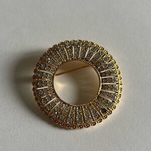 Vintage JBK Gold Plated Rhinestone Circle Brooch