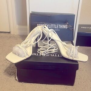 New in box never worn - Square barely there twisted knot lace up heeled sandal